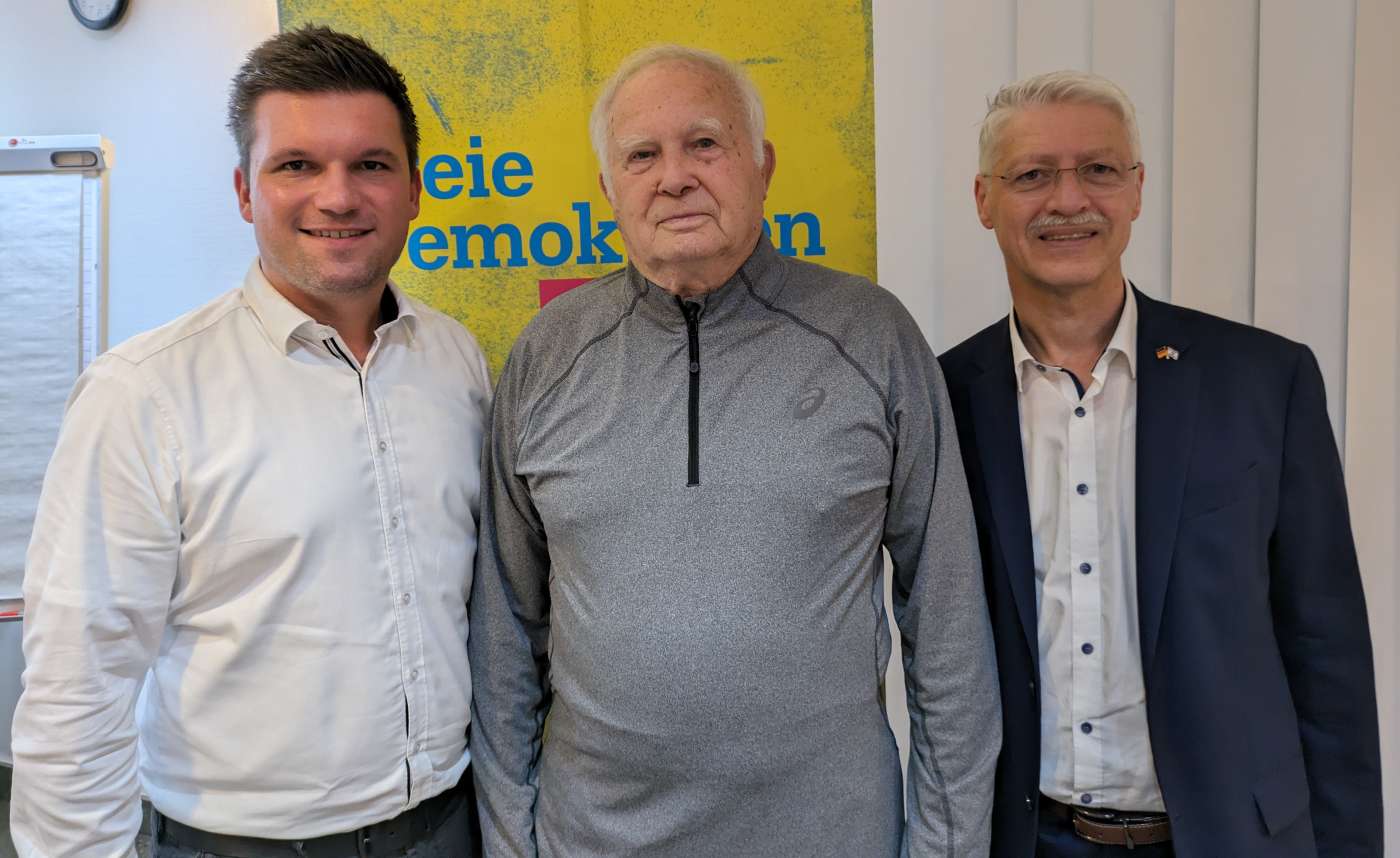 FDP Lahn-Dill stellt Sven Ringsdorf als Europakandidat auf und ehrt ReinholdSpaniol für 40jährige Mitgliedschaft